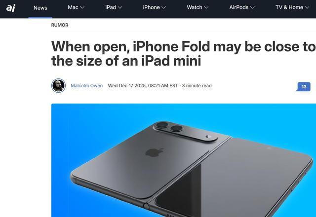[民众网科技抽象报谈]12月18日音书,据appleinsider报谈,苹果备受期待的iPhoneFold瞻望将成为2026年苹果智高手机产物线的新成员,其伸开尺寸据称与iPadmini左右但略小。笔据开头不解的显露图以及配件制造商间流传的CAD图纸交流成的渲染图披露,iPhoneFold在沟通上追求大屏幕体验的同期保握了便携性。
